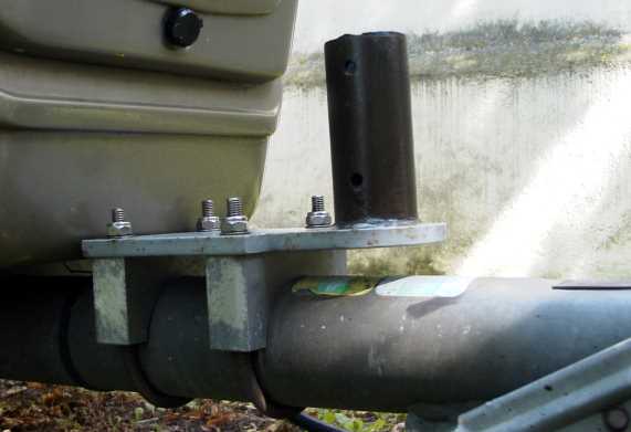 Eisenplatte mit aufgeschweißter Rohraufnahme, Alu-Halbschellen