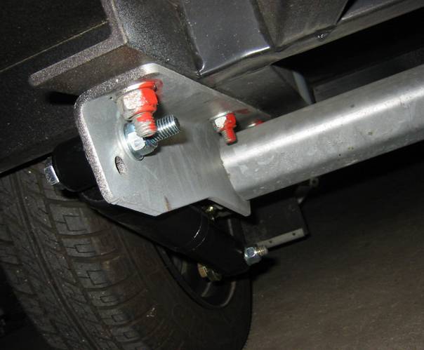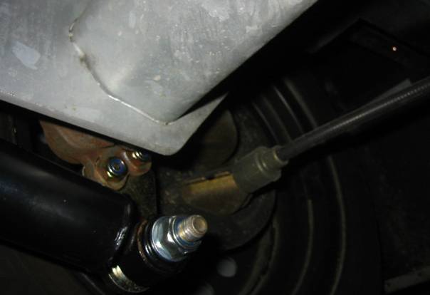 Hier die „Anbaulasche“ an der Achse mit Dämpfer Die Verschraubung des Dämpfers am Rahmen ![]() |